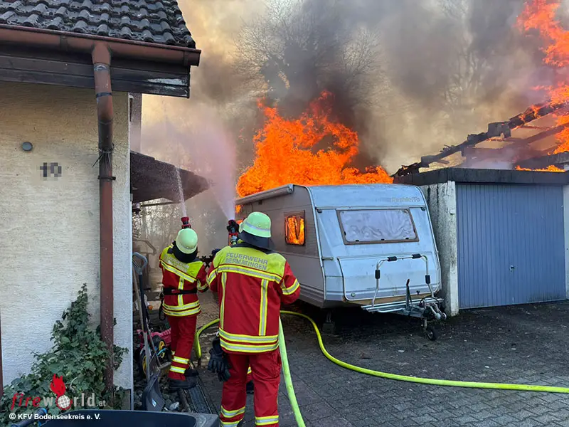 BERMATINGEN (DEUTSCHLAND): Am Freitagmittag, dem 20. März 2026, kam es in der Ringstraße in Bermatingen (Bodenseekreis) zu einem Brand einer Werkstatt in einem Wohngebiet, der in Folge auf das dazugehörende Wohnhaus übergriff.