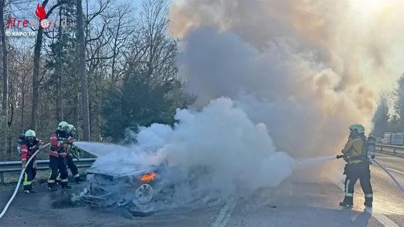 WÄLDI (SCHWEIZ): Am Freitagnachmittag, 20. März 2026, geriet ein Auto auf der A7 bei Wäldi in Brand. Die Feuerwehr löschte das Feuer, niemand wurde verletzt.