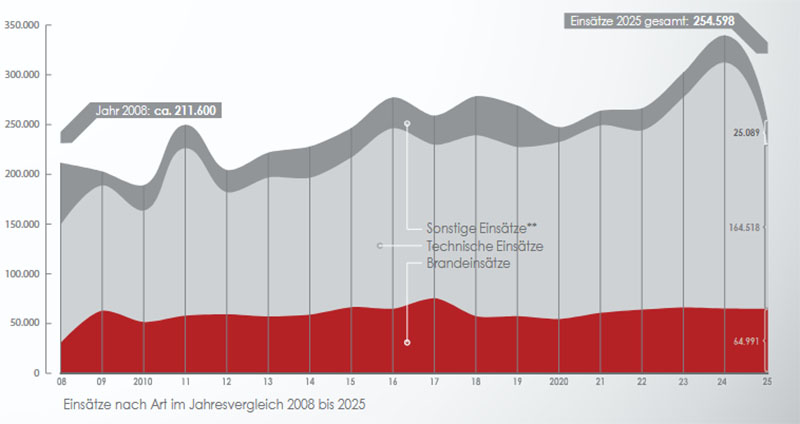 Im direkten Vergleich des Jahres 2025 mit dem besonders einsatzintensiven Jahr 2024 ist ein starker Rückgang bei den Einsätzen zu verzeichnen: