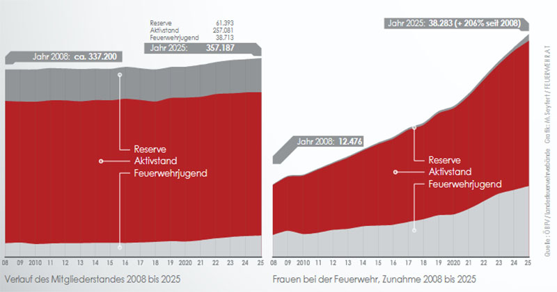 Auch der Frauenanteil in den österreichischen Feuerwehren ist wieder gestiegen: Mit einem Zuwachs von 2.280 Mädchen und Frauen auf in Summe 38.283 machen diese im Feuerwehrdienst mittlerweile rund 11% der Gesamtmannschaft aus. Auch wenn diese Zahl ausbaufähig ist, so setzt sich der positive Trend der letzten Jahre fort. Seit 2008 hat sich die Anzahl der weiblichen Feuerwehrmitglieder (Mädchen und Frauen) um 206% erhöht.