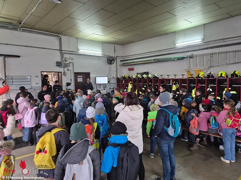 SIERNING (OÖ): Für 90 Schülerinnen und Schüler der 2. und 3. Klassen der Volksschule Sierninghofen-Neuzeug stand im März 2026 ein besonderer Programmpunkt auf dem Stundenplan: ein Besuch bei der Freiwilligen Feuerwehr Neuzeug-Sierninghofen im Rahmen des Projekts „Gemeinsam.Sicher.Feuerwehr“. Begleitet von ihren Lehrerinnen tauchten die Kinder in die Welt der Feuerwehr ein und erlebten einen abwechslungsreichen sowie lehrreichen Vormittag.