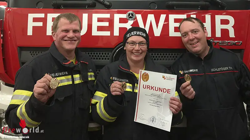Neben einem schriftlichen Test müssen die korrekte Geräteaufnahme, eine praktische Einsatzübung und das Warten und Prüfen der Geräte vor den Augen der strengen Bewerter durchgeführt werden. Das alles konnte der Trupp rund um Melanie erfolgreich absolvieren.