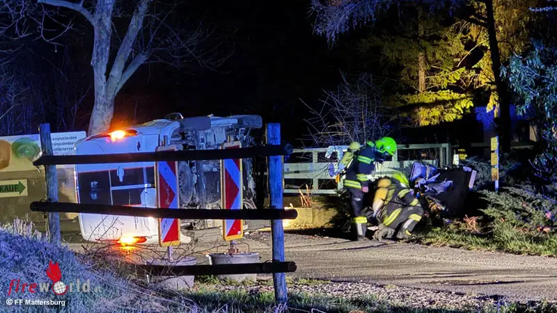 Beim Eintreffen an der Einsatzstelle stellte sich heraus, dass ein Fahrzeug seitlich zum Liegen gekommen ist. Entgegen der Erstmeldung war keine Person eingeklemmt – der Lenker konnte sich bereits selbstständig aus dem Fahrzeug befreien, und wurde in weiterer Folge vom Rettungsdienst versorgt.