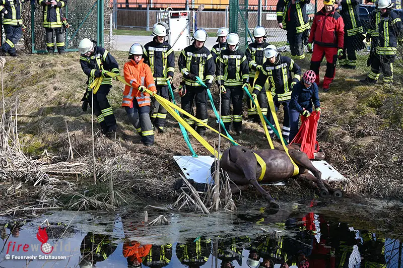 D: Feuerwehr Salzhausen trainiert Großtierrettung