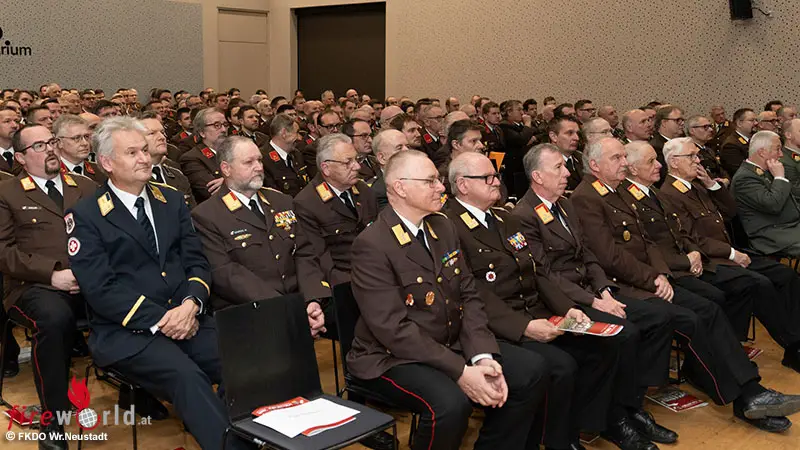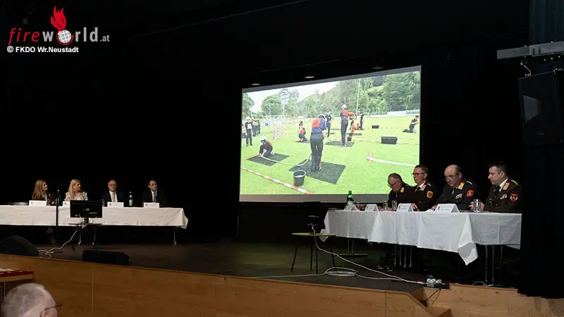 Insgesamt folgten 191 Feuerwehrmitglieder aus 67 der 72 Feuerwehren des Bezirkes der Einladung zum Bezirksfeuerwehrtag. In seinem Bericht gab Bezirksfeuerwehrkommandant Greiner einen Rückblick auf die Einsatzschwerpunkte und Schulungen des Jahres 2025 im Feuerwehrbezirk Wiener Neustadt. Hervorgehoben wurden unter anderem der Brand einer Lagerhalle in Wiener Neustadt, die Unterstützung beim Brand eines Papierlagers in Pitten, der Hochwassereinsatz in der Stadt Wiener Neustadt, der Waldbrand in Gutenstein sowie mehrere größere technische Einsätze.