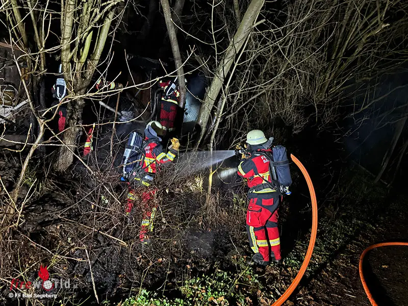 Im Anschluss räumten die Einsatzkräfte Unrat und Mobiliar aus dem Schuppen, kontrollierten die Holzverkleidung mit einer Wärmebildkamera und lockerten die betroffene Vegetation auf, um mögliche Glutnester abzulöschen. Der Einsatz war nach knapp einer Stunde beendet. Am Feuerwehrhaus folgten umfangreiche Nachbereitungsmaßnahmen. Zur Brandursache sowie zur Schadenshöhe können seitens der Feuerwehr keine Angaben gemacht werden. Verletzt wurde niemand.