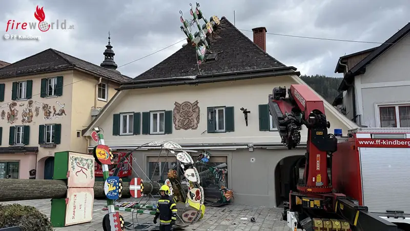 KINDBERG (STMK): Am Freitag, 27. März 2026, wurde die Freiwillige Feuerwehr Kindberg-Stadt mittels Sirenenalarm zu einem Sturmschaden in die Hauptstraße alarmiert.
