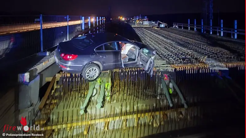 WÖBBELIN (DEUTSCHLAND): Bei einem Verkehrsunfall am Samstagabend, 28. März 2026, auf der A24 bei Wöbbelin ist ein Pkw-Fahrer durch eine Baustellenabsicherung auf eine im Rohbau befindliche Autobahnbrücke gefahren.