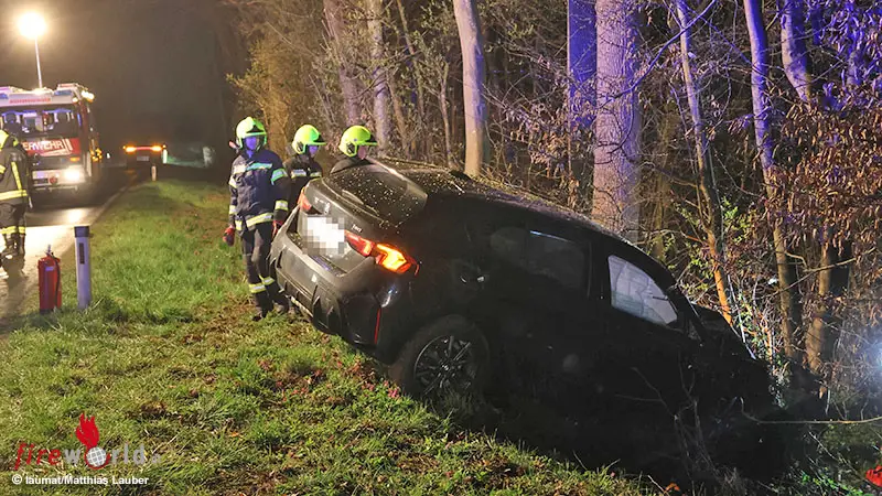 NIEDERNEUKIRCHEN (OÖ): In Niederneukirchen (Bezirk Linz-Land) ist am späten Sonntagabend, 29. März 2026, ein Auto von der Straße abgekommen und gegen Bäume am Waldrand gekracht. Eine Person wurde bei dem Unfall verletzt.