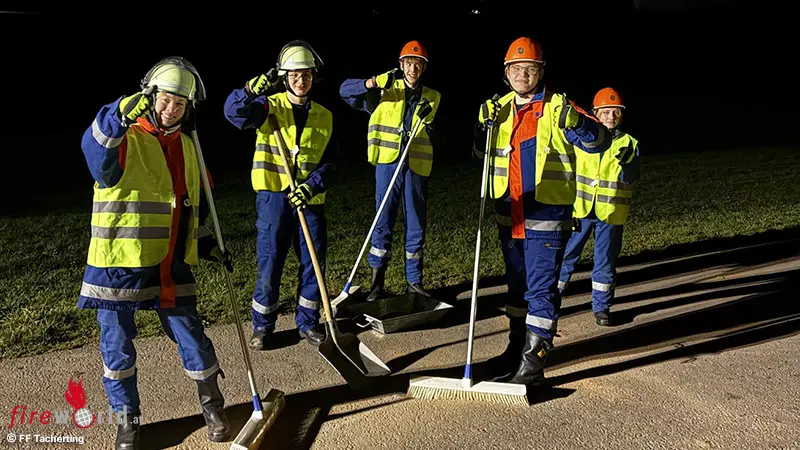 Am Abend wurden die Jugendlichen erneut gefordert: Zunächst musste eine Ölspur auf einer Straße beseitigt werden, bevor ein weiterer Einsatz anstand. Ein besonderes Highlight war dabei die Übung „Vermisste Person im Wasser“, die im Tachertinger Schwimmbad stattfinden konnte. Dort durften die Jugendlichen Schwimmwesten und spezielle Anzüge für Einsätze im Wasser testen. Möglich gemacht wurde diese Übung unter anderem durch die Unterstützung von Führungskraft Martin Wöcherl sowie durch die kooperative Unterstützung von Bürgermeister Werner Disterer.
