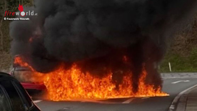 Um 17:00 Uhr wurde ein brennendes Fahrzeug im Bereich der Autobahnabfahrt der BAB 3 gemeldet. Beim Eintreffen der Einsatzkräfte stand der Pkw bereits in Vollbrand.