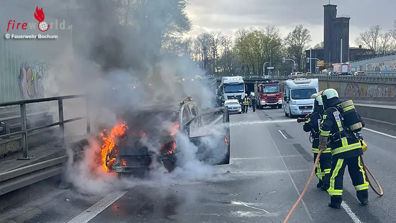 BOCHUM (DEUTSCHLAND): Die Feuerwehr Bochum wurde um 17:33 Uhr des 30. März 2026 zu einem brennenden Pkw auf die BAB 40 in Höhe der Anschlussstelle Hamme in Fahrtrichtung Dortmund alarmiert.