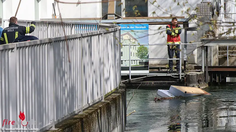 Eine Couch oder zumindest ein Teil davon trieb vor einem Kleinkraftwerk in der Welser Innenstadt. Bezogen auf den 1. April sprachen die Einsatzkräfte von einem schlechten Aprilscherz. Die Einsatzkräfte der Feuerwehr verschafften sich Zugang zum Kraftwerksbereich, nach dem Anlegen von Schwimmwesten konnte die Couch aus dem Wasser gefischt werden.