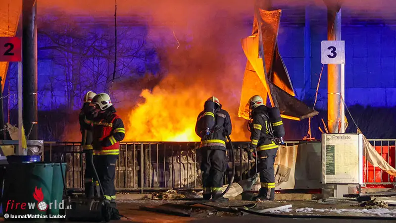 Die Überdachung des Containers samt Beleuchtung und angrenzende Einrichtungen wurden jedoch teils schwer in Mitleidenschaft gezogen. Der betroffene Container wurde dann mit Schaum geflutet.