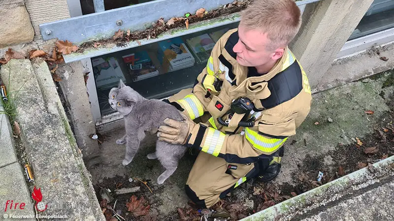 D: Feuerwehr Ennepetal holt Katze aus Lichtschacht
