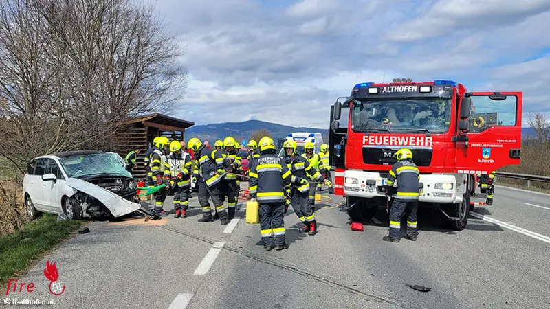 ALTHOFEN (KTN): Zu einem schweren Verkehrsunfall wurden die Feuerwehren Althofen und Meiselding am Karsamstag, dem 4. April 2026, um 14:20 Uhr mittels Sirene alarmiert. Auf der B317, Höhe Gaming, kam es zu einem Frontalzusammenstoß von zwei Fahrzeugen.