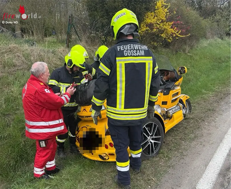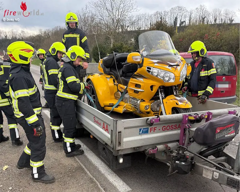 Die Feuerwehr Gossam führte die Bergung des Fahrzeugs durch und stellte dieses gesichert auf einem Abstellplatz ab.