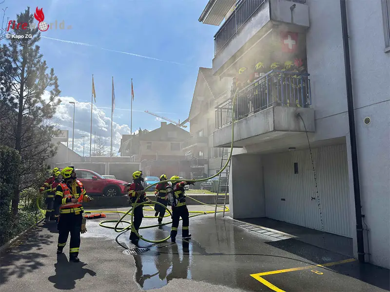 RISCH (SCHWEIZ): Am Sonntagnachmittag, 5. April 2026, brach auf einem Balkon in Holzhäusern (Gemeinde Risch) ein Brand aus, der rasch gelöscht wurde; drei ältere Bewohner blieben unverletzt.