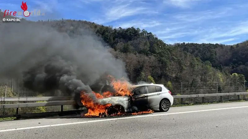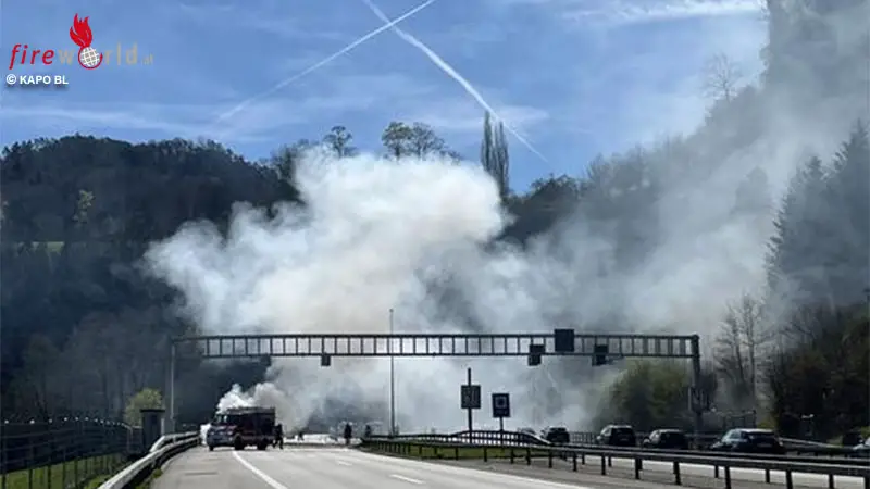 DIETGEN (SCHWEIZ): Am Sonntagmittag, dem 5. April 2026, geriet auf der A2 bei Diegten ein BMW in Vollbrand, niemand wurde verletzt, Tunnel waren kurzzeitig gesperrt.