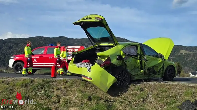 PÖLS (STMK): Am Ostermontag, dem 6. April 2026, wurden die Feuerwehren Pöls und Götzendorf zu einem Verkehrsunfall mit vermutlich eingeklemmten Personen alarmiert. Auf der B114 auf Höhe Enzersdorf waren zwei Fahrzeuge kollidiert.