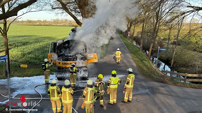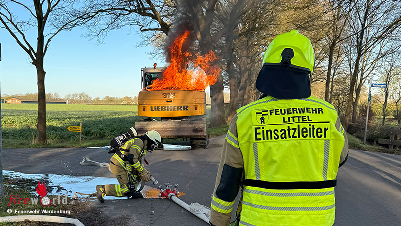WARDENBURG (DEUTSCHLAND): Am Mittwoch, den 8. April 2026, wurde die Feuerwehr Littel gegen 08:00 Uhr zu einem brennenden Löffelbagger alarmiert.
