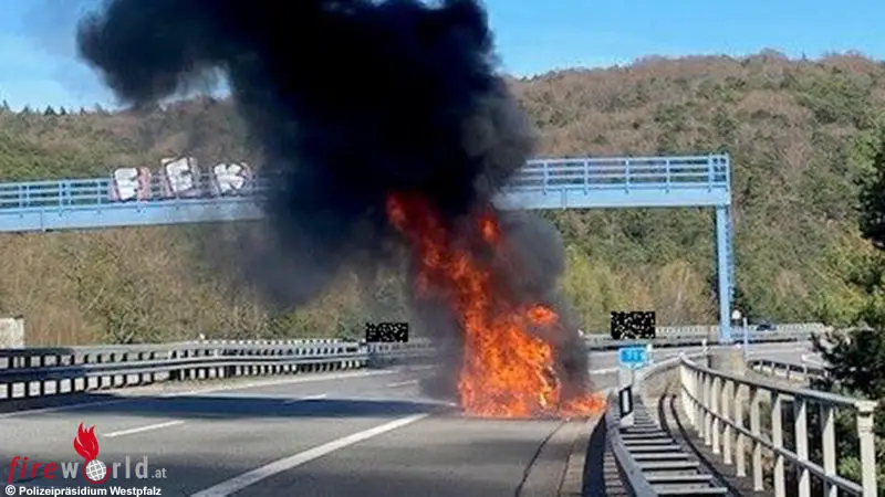 KAISERSLAUTERN (DEUTSCHLAND): Vermutlich aufgrund eines technischen Defekts geriet am Mittwochnachmittag, dem 8. April 2026, ein BMW-Kombi kurz nach der Überleitung von der BAB 6 in Richtung Mainz in Brand.