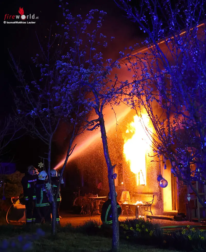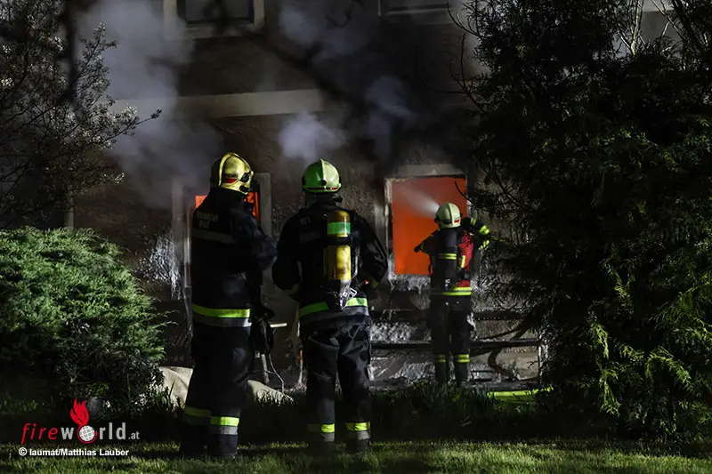 Beim Eintreffen der ersten Kräfte schlugen bereits die Flammen aus den Räumlichkeiten im Erdgeschoß des Gebäudes. Durch einem umfassenden Löschangriff konnte ein Ausbreiten des Feuers auf weitere Gebäudeteile erfolgreich verhindert werden.