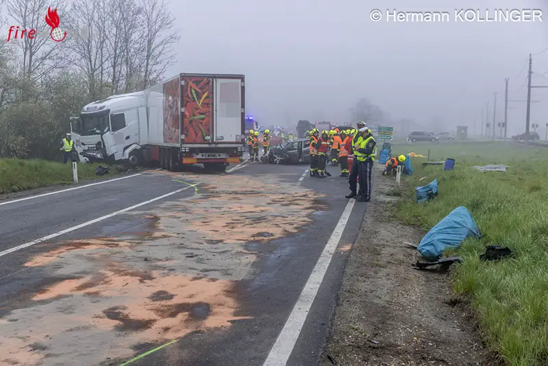 ALKOVEN (OÖ): Die B 129 zwischen Alkoven (Bezirk Eferding) und Straß war am Morgen des Samstag, 11. April 2026, Schauplatz eines folgenschweren Verkehrsunfalles. Beim Zusammenstoß zwischen einem Pkw und einem Sattelschlepper kam ein 19-jähriger Mann ums Leben.