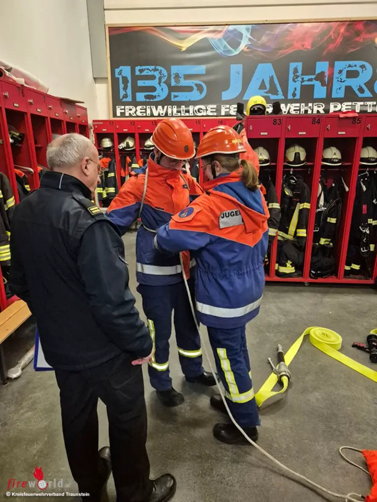 Bei einer weiteren Zwischenprüfung in Petting konnten fünf Teilnehmer ihr erworbenes Wissen unter Beweis stellen und sich für den weiteren Kompetenzerwerb qualifizieren. Die örtliche Feuerwehr verzichtete dabei auf einen Lehrgang des Kreisfeuerwehrverbandes und bereitete ihre Nachwuchskräfte eigenständig auf die Prüfung vor – „mit sehr gutem Erfolg“, freut sich Günter Wambach.