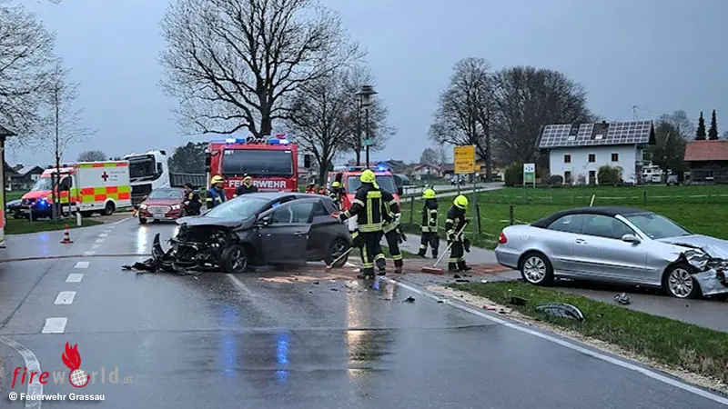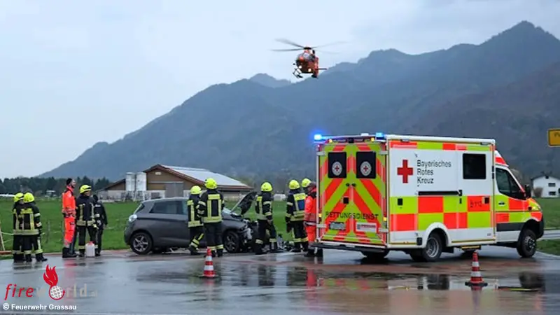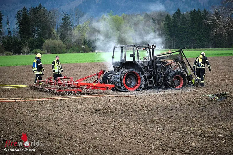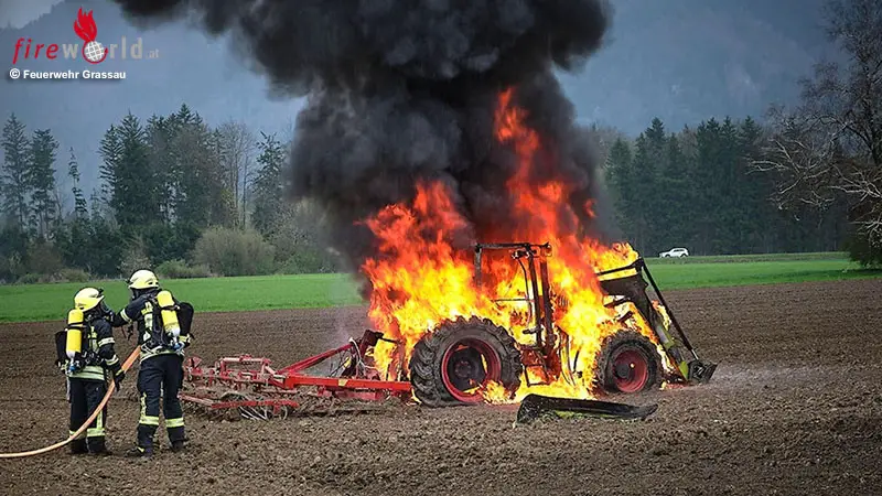 GRASSAU (BAYERN): Am Freitagvormittag, 10. April 2026, wurden die Feuerwehr Grassau um 09:49 Uhr zu einem Verkehrsunfall mit zwei beteiligten Pkw auf die Pettendorfer Straße alarmiert. Nach ersten Meldungen handelte es sich um einen Zusammenstoß zweier Fahrzeuge, infolgedessen beide Fahrzeuglenker verletzt wurden. Noch während des laufenden Einsatzes kam eine weitere Alarmierung wegen eines brennenden Traktors im Wasserschutzgebiet nahe Mietenkam hinzu. Trotz des schnellen Einsatzes brannte die landwirtschaftliche Maschine völlig aus. Der Fahrzeugführer konnte sich rechtzeitig in Sicherheit bringen.