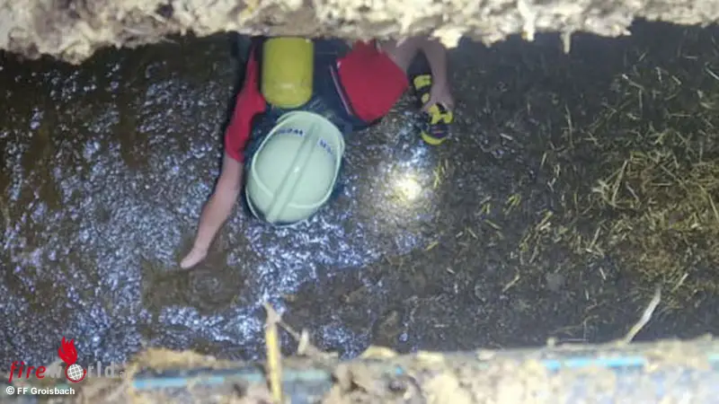 ALLAND (NÖ): Die Freiwillige Feuerwehr Groisbach (Gemeinde Alland) Bezirk Baden wurde am 8. April 2026 zu einem Tierrettungseinsatz alarmiert. Zwei ganz frisch geborene Kälber waren in eine Güllegrube gestürzt.