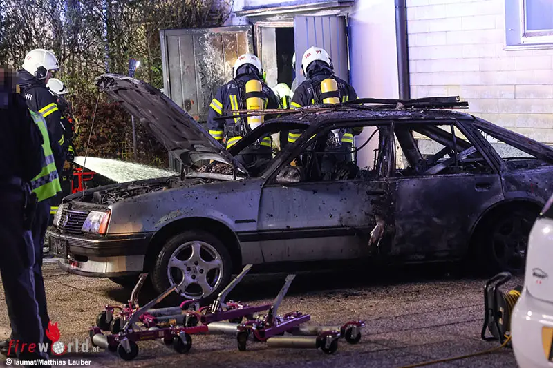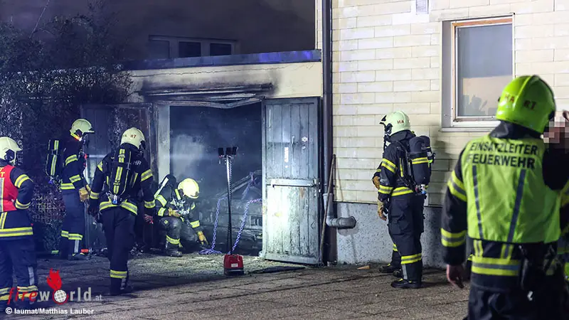 Oö: Garage samt Autos bei Mehrparteienwohnhaus in Leonding in Flammen