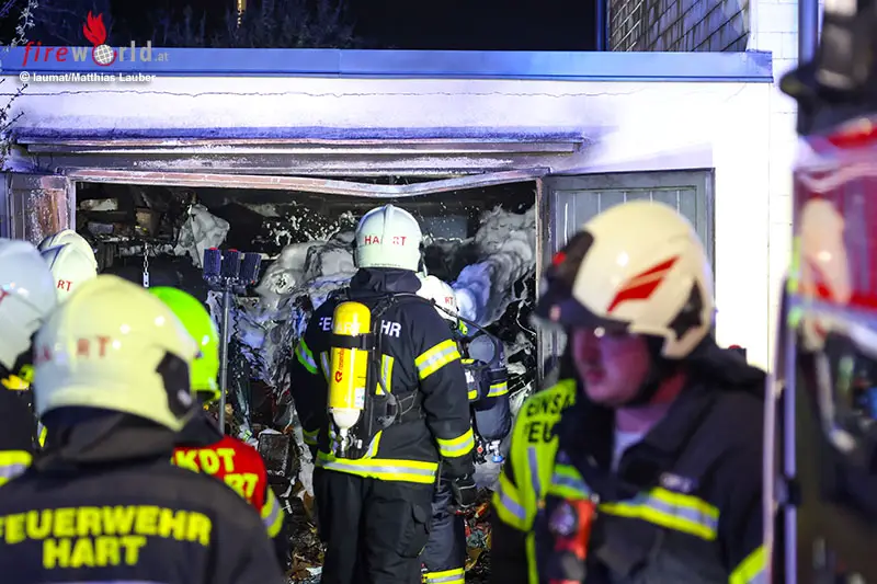 LEONDING (OÖ): In Leonding (Bezirk Linz-Land) ist es am späteren Sonntagabend, 12. April 2026, zu einem ausgedehnten Garagenbrand gekommen. Im der Garage waren offenbar zwei Pkw abgestellt.