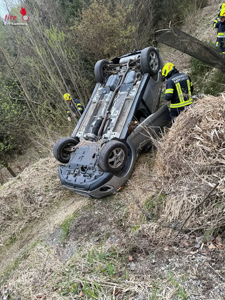 KAPFENBERG (STMK): In den Abendstunden des 12. April 2026 wurde die Freiw. Feuerwehr Kapfenberg-Stadt zu einem Verkehrsunfall auf einer Bergstraße alarmiert. Ein Pkw kam von der Straße ab und überschlug sich.