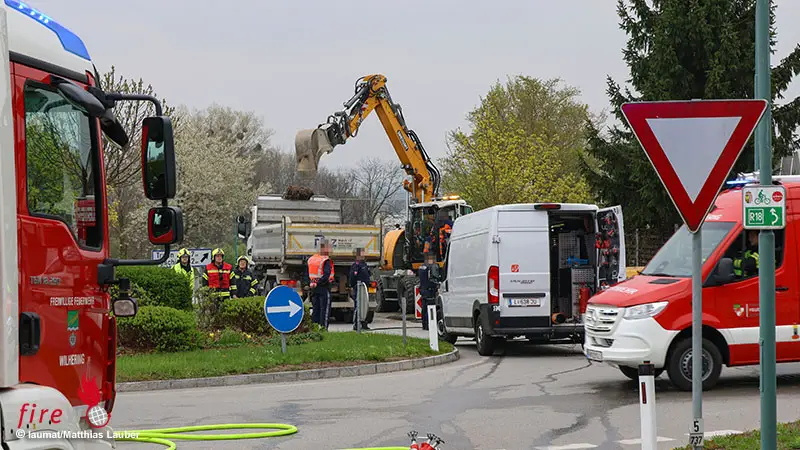 Oö: Gasleitung bei Baggerarbeiten in Wilhering beschädigt