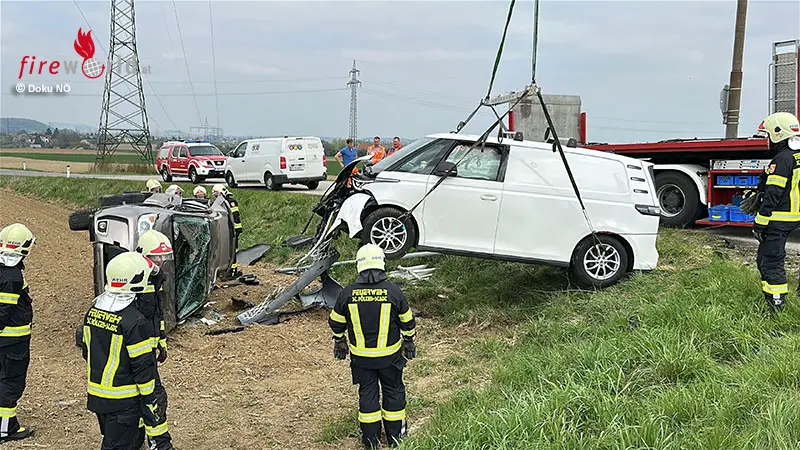 ST. PÖLTEN (NÖ): Am 15. April 2026 kam es am frühen Nachmittag auf der Bundesstraße B1 zwischen St. Pölten Stadt und Gerersdorf zu einem schweren Verkehrsunfall. Aus bislang ungeklärter Ursache kollidierten in einem Kreuzungsbereich ein Pkw und ein Firmenbus.