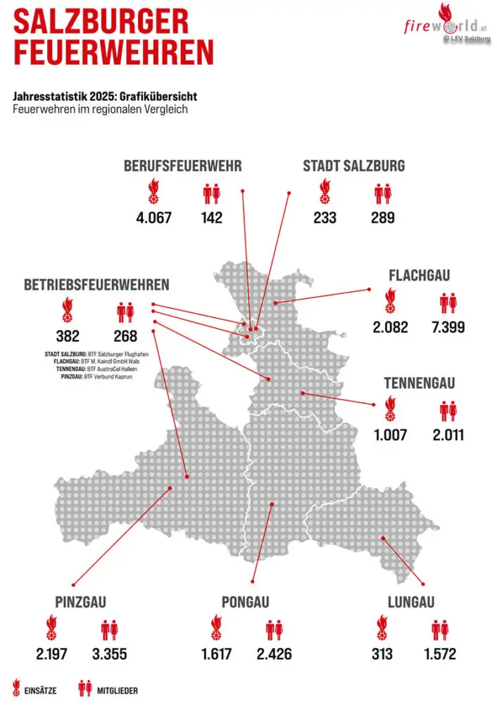 Salzburger Feuerwehr-Bilanz 2025: 11.898 Einsätze und 1,4 Millionen Arbeitsstunden