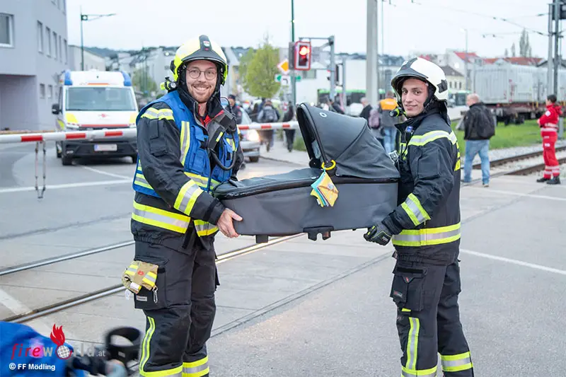MÖDLING (NÖ): Am Abend des 14. April 2026 wurde die Freiwillige Feuerwehr Mödling gegen 19:00 Uhr zu einer Menschenrettung im Bereich der Bahnüberfahrt in der Friedrich-Schiller-Straße alarmiert.