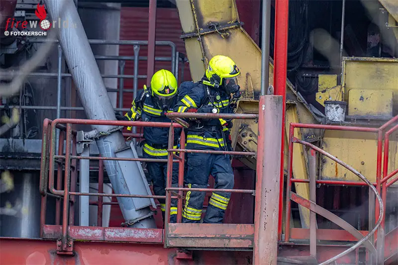 Die Einsatzkräfte gingen sowohl im Außen- als auch im Innenangriff gegen die Flammen vor. Mehrere Atemschutztrupps standen im Einsatz, um den Brand unter schwierigen Bedingungen einzudämmen und eine Ausbreitung auf weitere Anlagenteile zu verhindern.