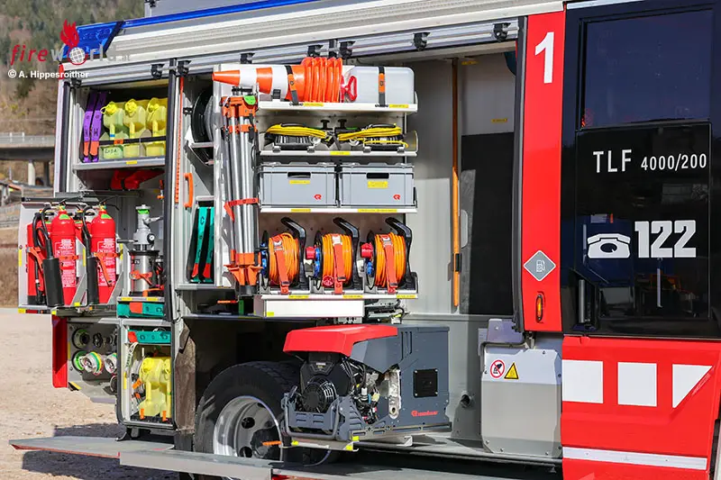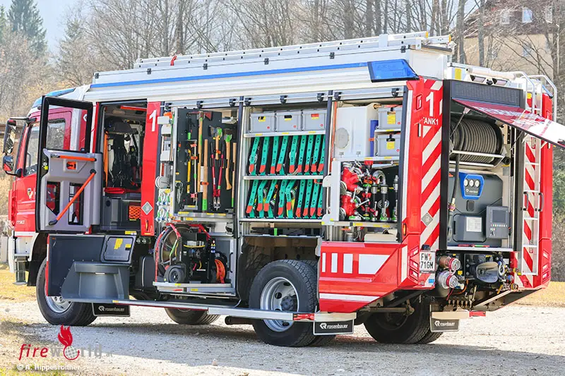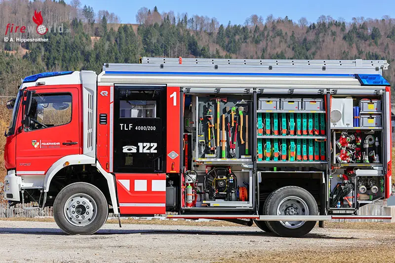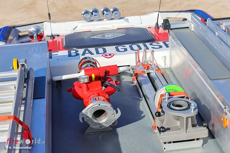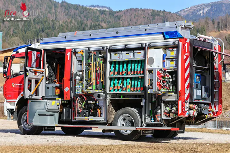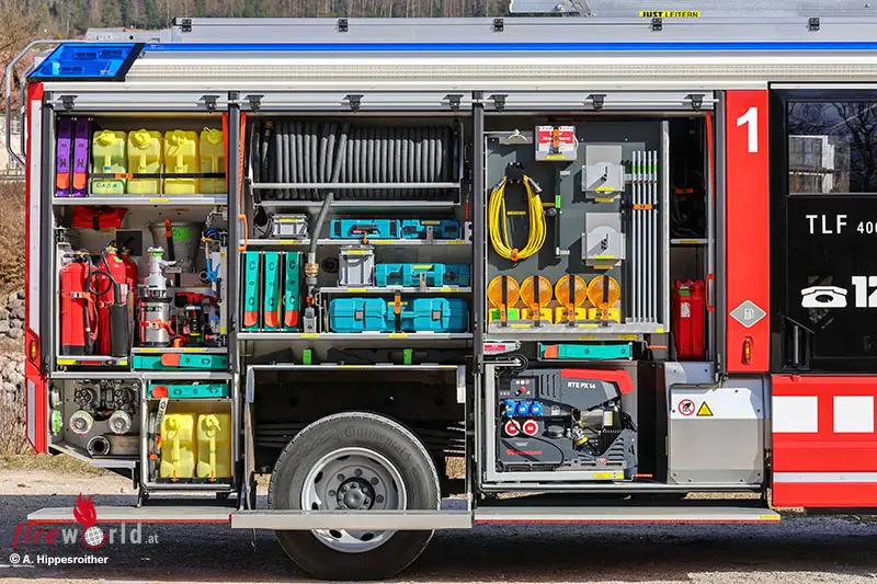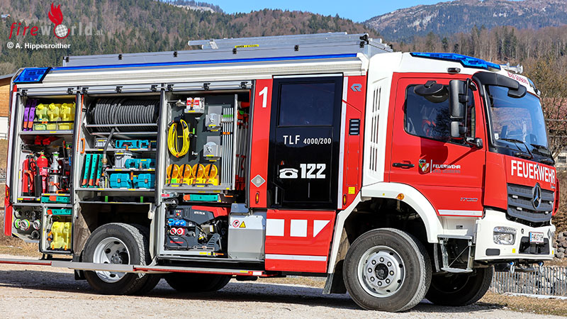 BAD GOISERN (OÖ): Bei Bränden ist es das erste wasserführende Fahrzeug, das im Löschzug der FF Bad Goisern ausrückt. 4000 Liter Wasser, 200 Liter Schaummittel sowie Pulver- und CO2-Löscher werden als Löschmittel mitgeführt. Ein leistungsstarker Stromerzeuger, LED-Lichtfluter, zwei HD-Schnellangriffseinrichtungen sowie eine für Schaum, Atemschutzgeräte, Chemie-Schutzausrüstung und vieles mehr gehören zur Beladung. Somit ist das Fahrzeug nicht nur im Brandeinsatz, sondern auch bei weiteren (Groß)schadenslagen (Sturm, Unwetter, Hochwasser) universell und als autarke Einheit einsetzbar.