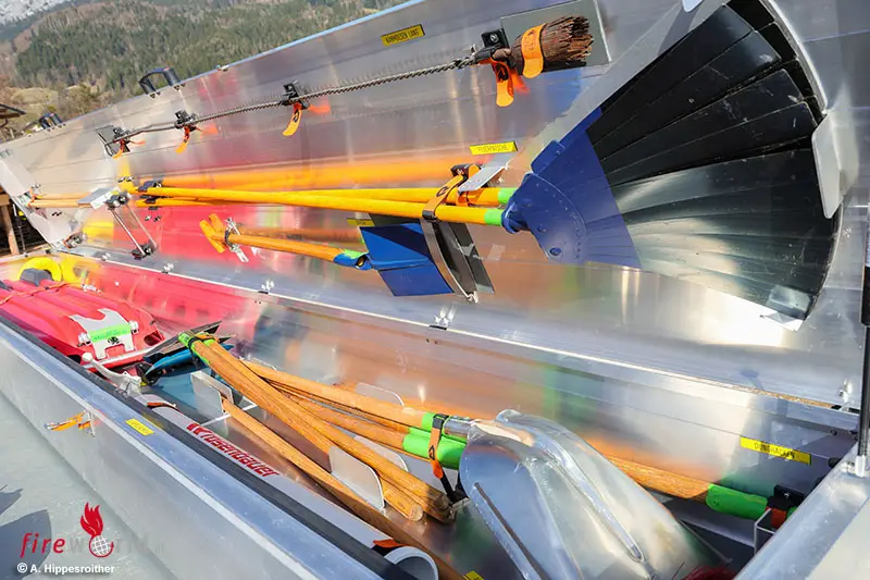 Schanzwerkzeuge, Schaufeln, Besen, Heugabeln, Wasserschieber, Kaminkehrbesen, eine Motorsäge samt Forstwerkzeugen und Schutzausrüstung (für Unwetterlagen nach Stürmen) machen das Fahrzeug auch über den Brandeinsatz hinaus vielseitig einsetzbar.