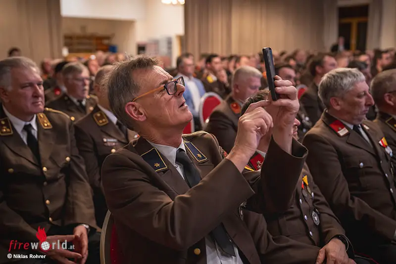 Für einen besonderen Moment sorgte die Würdigung von Bezirksfeuerwehrkommandant LFR Johann Gasperlmair, der heuer auf 25 Jahre an der Spitze des Bezirksfeuerwehrkommandos Wels-Land zurückblicken kann. Ein Vierteljahrhundert, in dem er den Bezirk mit Weitsicht, Beharrlichkeit und großem persönlichem Einsatz geprägt hat. Bezirkshauptfrau MMag. Elisabeth Schwetz überreichte zu diesem besonderen Dienstjubiläum ein Präsent. Feuerwehrpräsident und Landesfeuerwehrkommandant Robert Mayer, MSc., würdigte diese außergewöhnliche Leistung und kündigte an, dass die große Auszeichnung für dieses bemerkenswerte Jubiläum im kommenden Jahr folgen wird – ein Versprechen, das mit viel Applaus quittiert wurde.