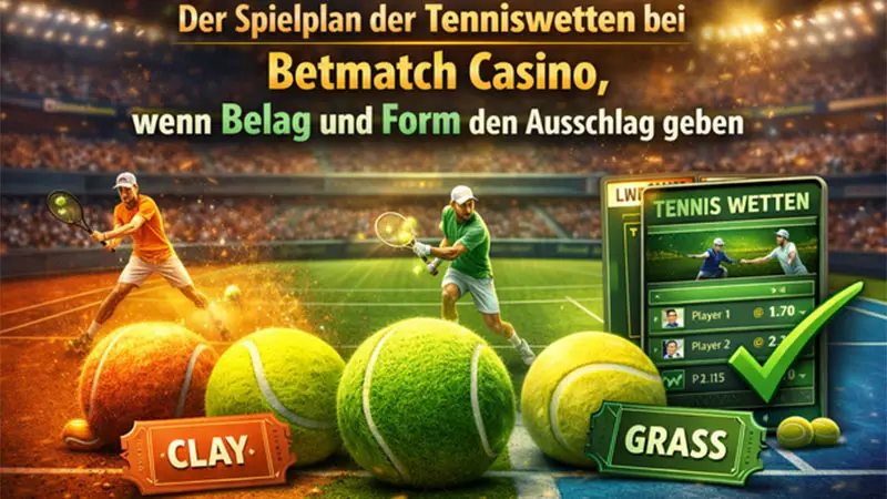 Der Spielplan, der Tenniswetten bei Betmatch Casino, wenn Belag und Form den Aufschlag geben