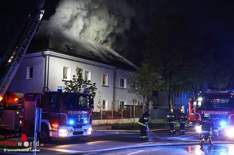 Oö: Fünf Wehren bei Dachstuhlfeuer an Doppelwohnhaus in Wels im Einsatz