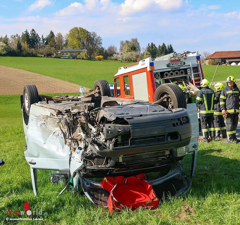 Oö: Kleinbus überschlägt sich bei Fahrzeugkollision in Ungenach