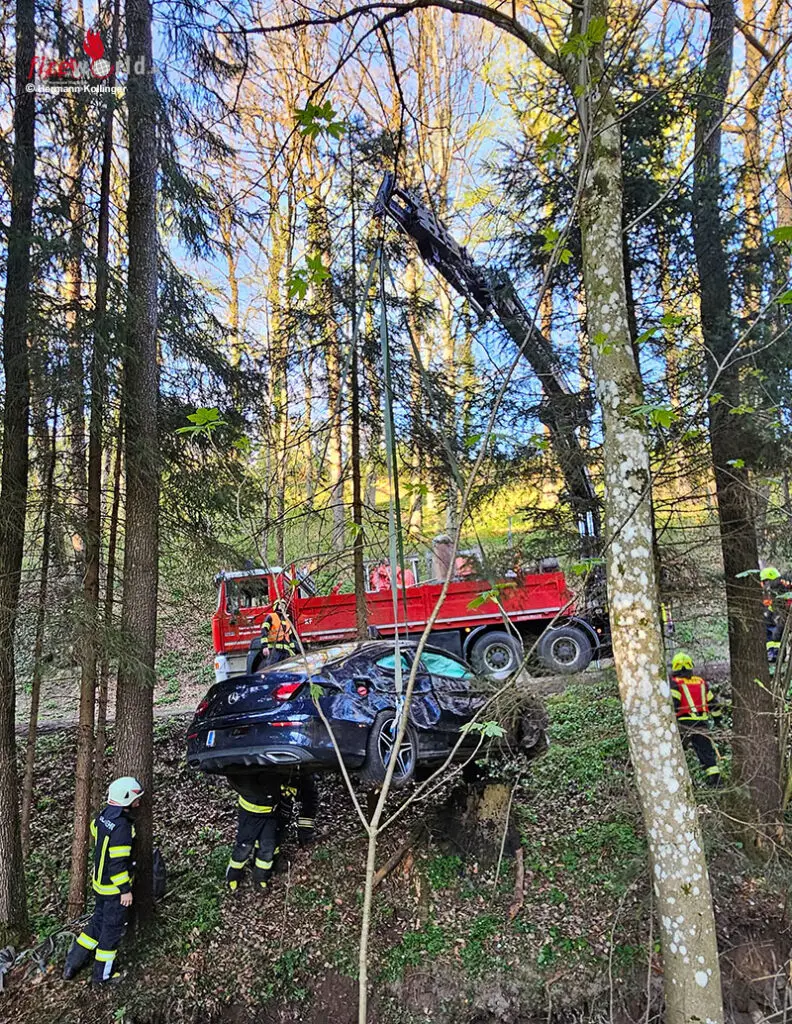 Sein Pkw musste von der Feuerwehr mittels Lkw-Kran geborgen werden. Ein bei dem 65-Jährigen durchgeführter Alkotest verlief positiv. Im Einsatz standen die Feuerwehren Haibach ob der Donau, St. Agatha, Hilkering-Hachlham und Alkoven.