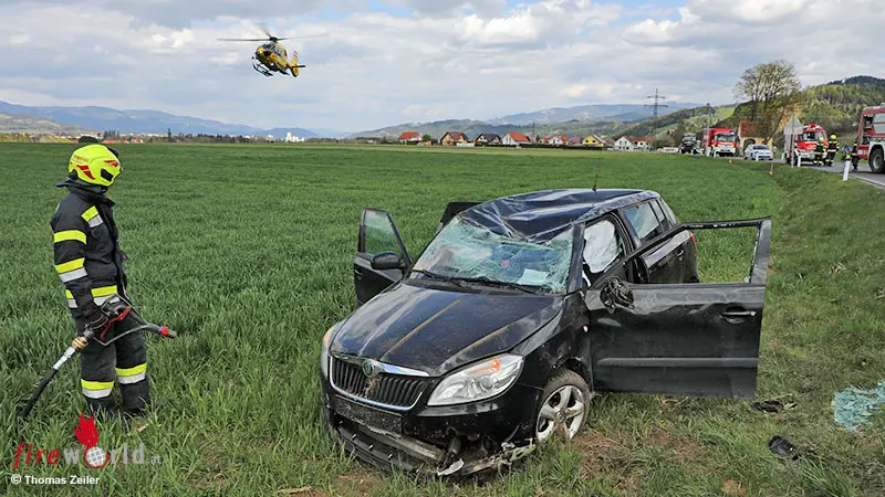 Stmk: Pkw bei Überschlag in Lobmingtal in Feld gelandet