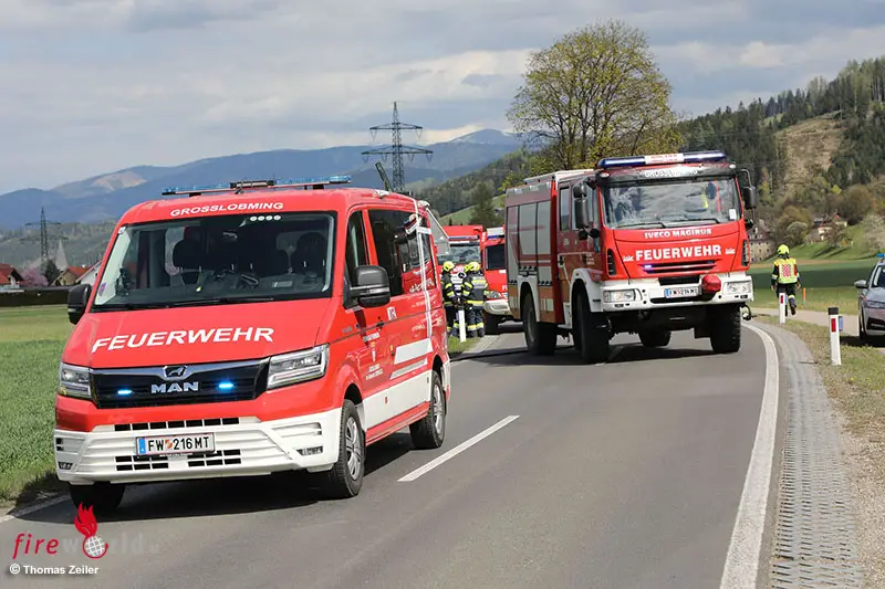 Nur wenige Minuten nach Eingang des Notrufs trafen Einsatzkräfte des Roten Kreuzes, die Polizei, die Feuerwehren Großlobming und Kleinlobming sowie der Rettungshubschrauber Christophorus 17 an der Unfallstelle ein.