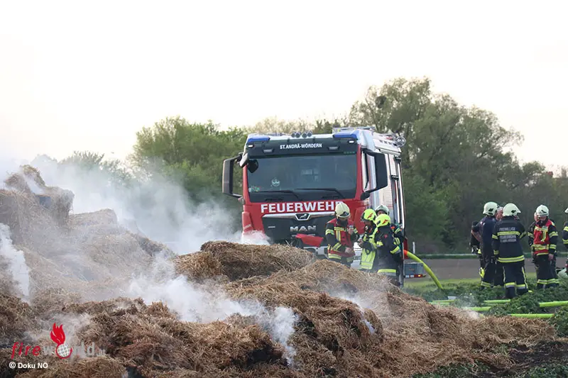 ZEISELMAUER-WOLFPASSING (NÖ): Am Samstagnachmittag, den 18. April 2026, kam es aus unbekannter Ursache zwischen Zeiselmauer und St. Andrä Wördern (Bezirk Tulln) zum Brand von Strohballen. Die Feuerwehren Zeiselmauer und Muckendorf wurden alarmiert.