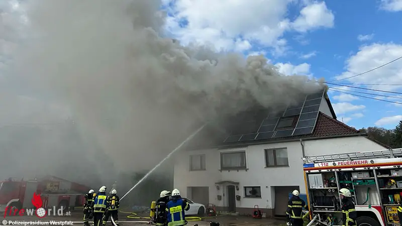 GLAN-MÜNCHWEILER (DEUTSCHLAND): Am Montagmorgen, den 20. April 2026, wurde gegen 08:45 Uhr ein Brand eines Einfamilienhauses in der Ringstraße in Glan-Münchweiler gemeldet. Beim Eintreffen der ersten Einsatzkräfte stand der Dachstuhl des Anwesens bereits in Vollbrand.